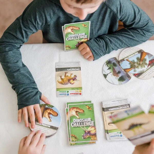 If children are having difficulty picking a Dinosaur Card to play, ask a couple of questions about the Challenge Disk to help them think about what traits might be best suited to win the challenge.