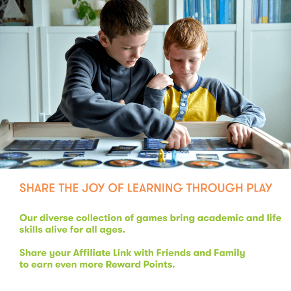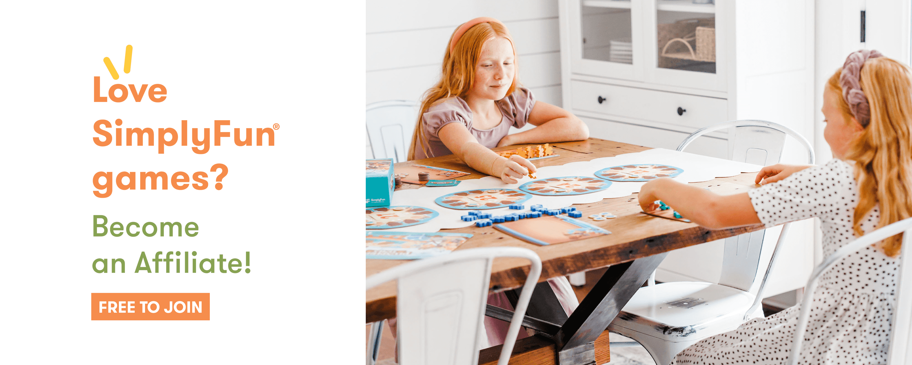 Become a SimplyFun Affiliate and receive a 15% Discount on all your game purchases! You will also have opportunities to earn Reward Points that can be converted into coupons for even more games.