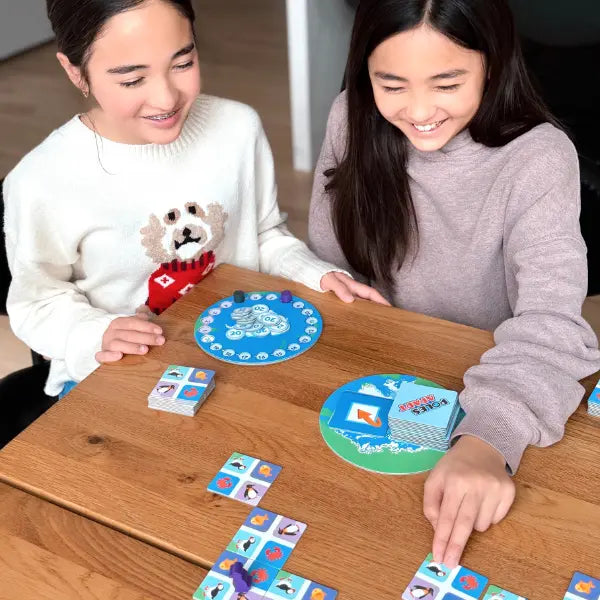 Poles Apart involves examining the play area and creating mental models of the consequences of playing and flipping their animal card. Making and comparing mental models is an advanced, complex cognitive skill that supports learning spatial relations, pattern recognition and creative problem solving. To help children learn these skills, ask them to describe aloud the different sequence of placing and flipping their animal card they can make and the potential consequences for each.