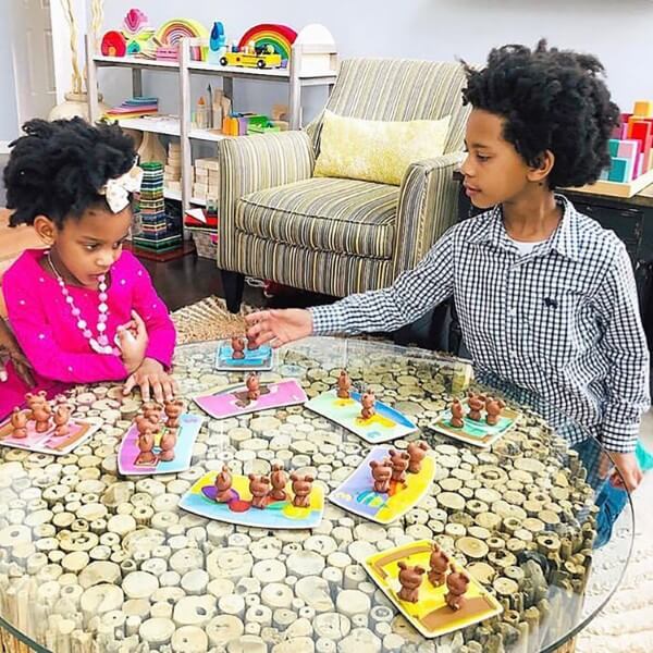 Uncle Beary's Bedtime is good for practicing one-to-one correspondence and basic decision-making. While learning the game, children may need to be reminded of the rules in order to know whether to take bear cubs from the toy tiles or other players, or to place a bear cub on a toy tile.